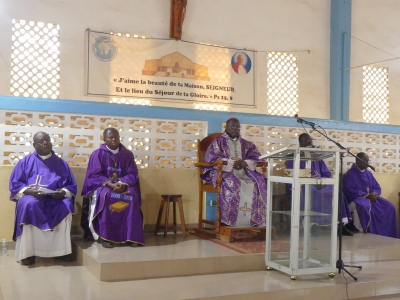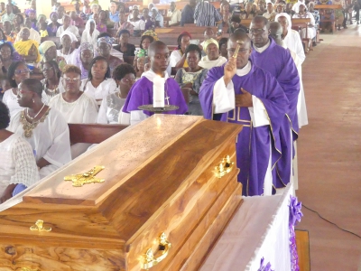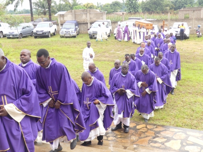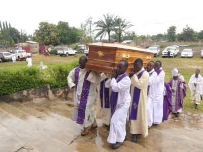 Rappelé à Dieu le 30 août 2024 à Sokodé, le TRP Nicolas Nibadèrou OURADEI a reçu les derniers hommages les 26 et 27 septembre 2024. En effet, une veillée messe non concélébrée fut dite à l’église paroissiale Christ Lumière du Monde de Kpangalam à Sokodé. La messe d’enterrement quant à elle fut dite le lendemain dans la même église. Présidée par l’évêque de Sokodé, Mgr Célestin-Marie GAOUA, il était entouré de Mgr Jacques LONGA, évêque de Kara et d’une cohorte de prêtres venus de près et de loin. Il y avait aussi de nombreux religieux et religieuses de divers instituts, les membres de la famille biologique du défunt ainsi qu’une foule nombreuse de fidèles. Outre les messages de condoléances, une oraison funèbre de la famille a été prononcée par le Père Donald FADAZ, neveu de l’Abbé Nicolas OURADEI. Evoquant son souvenir à la veillée messe qu’il a présidée, le Père Nicodème ALASSANI a insisté entre autres sur sa foi et sa confiance : « Nous nous souvenons de sa foi profonde qu’il traduisait dans sa vie en Eglise, dans sa prière, dans la pratique de sa vie de chrétien et de prêtre… Il avait mis dans le Christ sa confiance et son espérance…Il avait en effet une réelle vénération de l’Eucharistie à laquelle il était fidèle. Célébrer l’Eucharistie n’était pas pour lui un geste banal ou répétitif. Il y puisait la force nécessaire pour affronter les faiblesses de sa condition humaine, les chocs de l’existence, les épreuves de la vieillesse et de la maladie qui ont marquées les dernières années de sa vie terrestre. » Né le 04 décembre 1936, le Père Nicolas OURADEI a été ordonné prêtre le 21 décembre 1963 pour le service du Seigneur et de son Eglise. Que son exemple de fidélité au Christ stimule toute la chrétienté ! Puisse-t-il y trouver le repos près du Seigneur pour qui il a donné sa vie pour servir ses frères et sœurs.