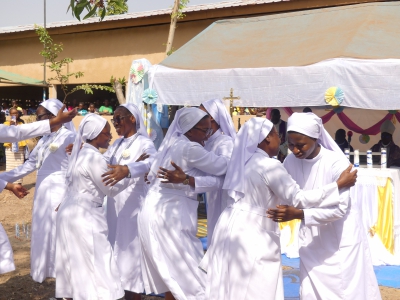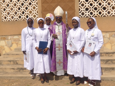 Les Sœurs de la Providence de St André de Peltre ont jubilé en cette fin d’année 2024 pour les 70 ans (Jubilé de platine) de leur présence au Togo. En effet, l’action de grâce de ce jubilé de platine fut dite le dimanche 8 décembre 2024 au Noviciat à Aouda en présence d’une foule nombreuse de fidèles et d’invités. L’Eucharistie de circonstance fut présidée par l’évêque de Sokodé, Mgr Célestin-Marie GAOUA. Elle fut concélébrée par une dizaine de prêtres dont les vicaires général et épiscopal, les TRP Michel MAMA-BETRE et Alfred PIGNAN. Dans son mot de bienvenue, la Provinciale Sr Colette SIMLISSI a souhaité la cordiale bienvenue à tous les participants. Aussi a-t-elle rappelé les motifs de ce rassemblement. Il s’agit des 70 de présence au Togo mais aussi la reconnaissance au Seigneur pour les 25 ans de vie religieuse des Sœurs Viviane AGBEZO et Clarisse BAOULIBAYA et l’engagement temporaire des Sœurs Germaine AKROKOTO (Paroisse St Joseph de Kaboli) et Damienne SOUMOU (Paroisse Ste Rita de Mazada). La supérieure générale, Mère Marie Astrid HUBERT a dans son message rendu grâce au Dieu Providence pour les pionnières qui sont arrivées au Togo le 24 septembre 1954 suite à l’appel de Mgr Joseph Strebler alors Vicaire apostolique de Lomé. En effet, grâce à leur témoignage, plusieurs se sont engagés dans la vie religieuse. « 70 ans ce n’est pas hier ; c’est une histoire qu’on ne peut raconter. Car c’est une histoire d’amour dans laquelle Jésus et sa mère Marie sont les premiers exemples, exemples dans les missions qui ont été accomplies par vous ou qui seront accomplies par vous, religieuses de cette famille St André de Peltre. » a déclaré en substance l’évêque de Sokodé dans sa méditation. « Soyez assurés de notre proximité priante, a-t-il poursuivi, celle de toute la famille diocésaine à Sokodé. Que Dieu vous donne le courage de répondre maintenant de répondre aux nombreux défis de notre temps. Qu’il vous donne la grâce aux hommes et aux femmes et surtout aux jeunes de notre diocèse de Sokodé la bonté et l’humanité de notre Sauveur Jésus-Christ. » Au terme de cette célébration pleine de ferveur, toutes les Sœurs de Providence présentes à cette célébration ont renouvelé leur engagement au service du Seigneur et de son Eglise par une consécration à la Bienheureuse Vierge Marie. Les élues du jour ont également exprimé leur remerciement à l’évêque, aux prêtres, et à tous les fidèles. Il en est de même pour la Provinciale, S. Colette SIMLISSI qui a exprimé à tous sa reconnaissance. Présentes au Togo depuis 1954, les Sœurs de la Providence de St André de Peltre sont dans l’éducation, la santé, les œuvres sociales et pastorales.