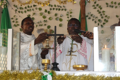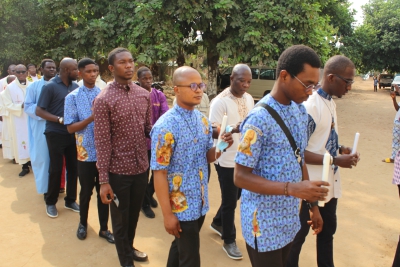 A l’occasion de la célébration de la journée mondiale de la vie consacrée le dimanche 2 février 2025, la paroisse St Paul d’Aou-Mono a accueilli les consacrées en mission dans le diocèse de Sokodé. L’Eucharistie fut présidée par l’ordinaire du diocèse, Son Excellence Mgr Célestin-Marie GAOUA. A l’entame de cette célébration qui est celle de la fête de la présentation du Seigneur au Temple, l’administrateur de ladite paroisse, le Père Abel LONGA n’a pas manqué de souhaiter la cordiale bienvenue aussi bien à l’évêque qu’à tous les fidèles présents. Commentant pour sa part les textes liturgiques de la messe, l’évêque de Sokodé a souligné que « le récit de la présentation de Jésus au Temple est extraordinaire par son symbolisme ainsi que par la richesse des personnages qui s’y trouvent. » « En ce monde où les ténèbres semblent dominer, nous portons l’espérance, nous devenons responsables de l’espérance pour nous-mêmes et ceux que nous connaissons. » a-t-il ajouté. « En cette fête de la présentation du Seigneur, Siméon et Anne, Marie et Joseph nous pressent de l’accueillir et de le faire connaitre au monde. » Au terme de cette célébration, les communautés religieuses se sont présentées une à une avant le mot de remerciement de la présidente de l’Union Des Consacrés (U.D.C.), la Sr Justine Agathe KIVYAMUNDA (Orante de l’Assomption). Après cette belle célébration, les consacrées ont partagé un moment de convivialité avec les paroissiens d’Aou-Mono avant de prendre congés d’eux. En rappel, cette journée annuelle de la vie consacrée fut instituée par St Jean-Paul II, pape, en 1997 afin d’encourager tous ceux et toutes celles qui donnent leur vie au Seigneur par la profession des conseils évangéliques (Pauvreté, Chasteté et Obéissance).