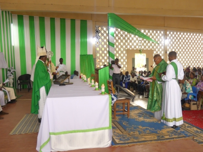Au cours de cette célébration pleine d’émotion et de ferveur, il a procédé à l’installation de son administrateur en la personne du Père Etienne PALANGA. Celui-ci n’a pas manqué d’exprimer sa reconnaissance à Dieu, à l’évêque, et à tous ceux qui se sont impliqués d’une manière ou d’une autre dans la construction du presbytère. S’en est suivie la bénédiction de cet édifice à la fin de la célébration eucharistique pour le plus grand bonheur des fidèles de la quasi-paroisse. Il est à noter que la quasi-paroisse St Raphaël est située sur la route nationale N1 à 3 km de Sotouboua, direction Sotouboua-Kara. Elle est limitée au Nord par Dalanda; au Sud et à l’Est par Watchalo; à l’ouest par de petits villages.