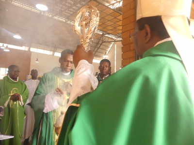 Les temps forts de cette cérémonie de bénédiction sont entre autres : l’aspersion des murs de la nouvelle chapelle, l’aspersion de l’autel, la liturgie de la parole, l’encensement de l’autel, de l’évêque et du peuple de Dieu et la liturgie de l’Eucharistie. Au terme de cette célébration pleine de ferveur, les fidèles de Yomaboua par la voix de leur porte-parole ont exprimé leur gratitude la reconnaissance de la communauté à l’évêque. A sa suite, le curé de la paroisse a également exprimé sa reconnaissance à Dieu et à tous ceux qui d’une manière ou d’une autre se sont impliqués dans l’organisation et la réussite de cette fête. Après la célébration eucharistique, place aux réjouissances populaires jusqu’à la tombée de la nuit.