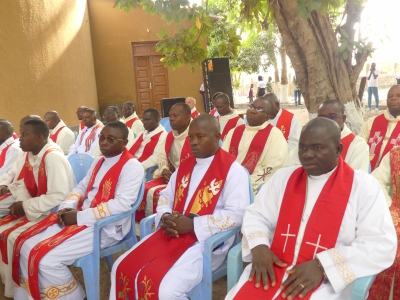 Le diocèse de Sokodé a accueilli le don d’un nouveau prêtre pour commencer l’année jubilaire 2025. En effet, le diacre Emmanuel WISSI a été ordonné prêtre le samedi 28 décembre 2024 au cours d’une célébration eucharistique à la paroisse St Joseph Artisan d’Adjengré. La cour intérieure de la mission a servi de cadre à cette célébration mémorable. Présidée par l’ordinaire du lieu, Mgr Célestin-Marie GAOUA, elle fut concélébrée par une soixantaine de prêtres dont les vicaires général et épiscopal, les TRP Michel MAMA-BETRE et Alfred PIGNAN. On notait aussi la présence d’une foule nombreuse de fidèles et d’invités venus d’horizons divers pour l’heureuse circonstance. A l’entame de cette célébration, le curé de ladite paroisse, le TRP Michel MAMA-BETRE a souhaité la cordiale la bienvenue à tous les fidèles. « Nous accueillons cet événement non seulement comme un cadeau de Noel mais surtout comme une première grâce du jubilé de l’an 2025 » a déclaré entre autres le curé d’Adjengré. Dans le même ordre d’idées, l’évêque de Sokodé a dans sa méditation rendu grâce à Dieu en ces termes : « L’Eglise famille de Dieu à Sokodé, a-t-il dit, s’honore d’accueillir le don que le Seigneur Jésus Souverain prêtre lui fait en ce jour et au début du jubilé ouvert le 24 décembre 2024 à Rome par le pape François. » S’adressant à l’élu du jour, le prélat l’a exhorté à veiller sur sa vie spirituelle. C’est après cette exhortation que l’ordination proprement dite s’est poursuivie par l’engagement du futur prêtre, la litanie des saints, l’imposition des mains, la prière consécratoire, et les rites complémentaires (vêture, onction des mains, remise de la patène et du calice, le baiser de paix). Cette partie tant attendue par le peuple de Dieu a suscité la joie pour les uns, l’admiration pour les autres et l’émerveillement pour l’élu du jour. Fécond ministère sacerdotal au Père WISSI Essogbazam Emmanuel Espérance qui n’a pas manqué d’exprimer sa gratitude à Dieu, à l’ordinaire du diocèse et son conseil, à sa familles bref au peuple de Dieu.