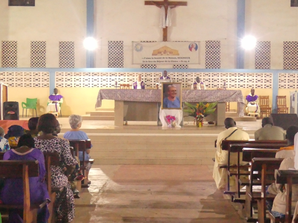 Rappelée à Dieu le 23 juin 2024 au Centre médical « La Source » à Sokodé à l’âge de 61 ans dont 29 ans de consécration religieuse, la Sr Marie PICHARD, Membre de la communauté du Puits de Jacob a reçu les hommages au cours de la veillée de prières tenue à la Paroisse Christ Lumière du Monde de Kpangalam le 4 juillet 2024. Celle-ci s’est déroulée en présence des membres de sa famille religieuse, des prêtres, des consacrés, et d’une foule nombreuse de fidèles venus lui témoigner l’hommage de leur amitié. Dans sa méditation circonstancielle, le Père Bertrand LEPESANT, Fondateur de la communauté du Puits de Jacob a souligné le fait qu’« elle aimait beaucoup accompagner les exercices spirituels de St Ignace. » « Elle était déjà dans la vie éternelle. » a-t-il ajouté. En effet, des différents témoignages, l’on retient d’elle le témoignage d’une femme très attentionnée, sympathique, compatissante, et soucieuse du bien-être des autres. Pour les membres de sa famille religieuse, « elle était vraiment une femme consacrée, toute donnée au Seigneur ». Sa fidélité dans la prière tant personnelle que communautaire les émerveillait. Aussi se rendait-elle disponible pour les nombreuses tâches de sa communauté. D’un tempérant calme, elle savait communiquer la joie autour d’elle. On peut sans risque dire selon le mot de l’Apôtre St Paul qu’elle s’est fait tout à tous(1Cor 9,22). Avant le bénédiction finale donnée par l’évêque de Sokodé, Mgr Célestin-Marie GAOUA, le Frère Moise EDORH a exprimé au nom de la communauté du Puits de Jacob sa reconnaissance aux uns et aux autres pour leur soutien multiforme durant cette épreuve. La célébration des obsèques aura lieu en France, à l’abbatiale d’Eschau, en Alsace, près de la maison mère de la communauté le 10 juillet 2024. Puisse-t-elle y trouver le repos près du Seigneur qu’elle a servi avec foi et dévouement. Amen.
